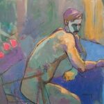 His figurative work, while skillfully representing the human form, is abstracted by color and shape to add depth and emotion.